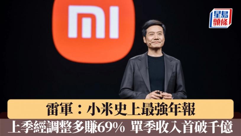 小米(1810)去年第四季收入1090億元(人民幣,下同),按年增長48.8%,首次單季度突破1,000億元,並創歷史新高;經調整淨利潤83.1億元,增長69.4%,勝市場預期,亦創出歷史新高。小米創辦人雷軍在微博上稱為「史上最強年報」,並將今年全年汽車交付目標由30萬輛提升至35萬輛。