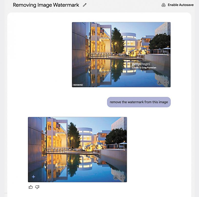 儘管如此,一些版權持有者肯定會對Gemini 2.0 Flash缺乏使用限制提出抗議。包括Anthropic的Claude 3.7 Sonnet和OpenAI的GPT-4o等模型,均明確拒絕去除浮水印,Claude指出,從圖片上移除浮水印是「不道德、甚至可能違法的行為」。本報訊