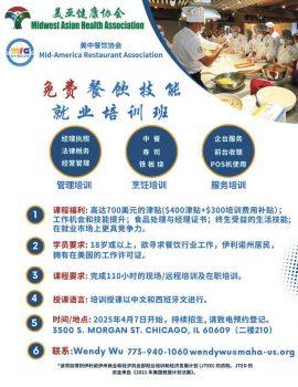 2025年4月7日第四期免費餐飲技能就業培訓班招生開始,歡迎有興趣者報名。美亞健康協會提供