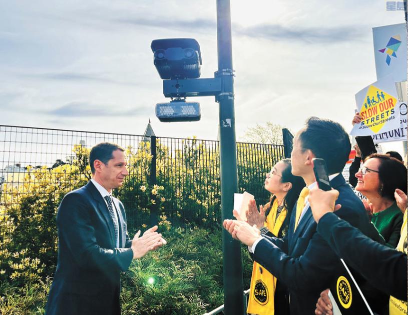 市長羅偉(Daniel Lurie)上午在北岸區Joe DiMaggio 公園開記者會,宣布正式啟動三藩市的自動測速照相機執法計劃,三藩市成為加州首個採用該技術的城市。羅偉強調,超速是導致三藩市交通傷亡的主要原因,測速照相機已被證明能提升道路安全。「作為市長,我的首要職責是保護我們的居民和遊客。」