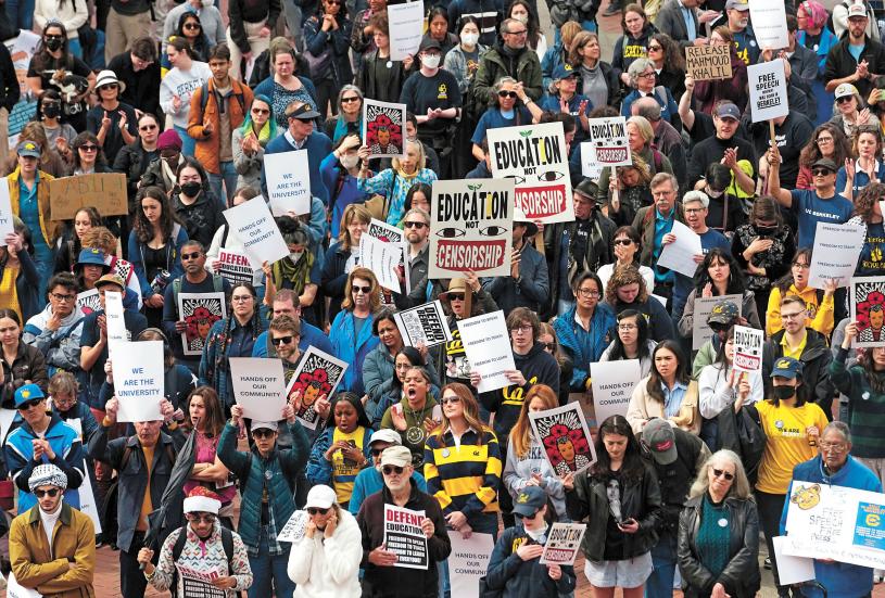 新聞網站San Francisco Standard報道,柏克萊加大史布勞爾廣場(Sproul Plaza)本周有數百師生集會,高舉「要教育,別審查」(Education, not Censorship)等標語,聲援日前因參與挺巴人示威而遭聯邦移民執法人員拘留的哥倫比亞大學巴勒斯坦裔學生哈利勒(Mahmoud Khalil)和其他社運人士。