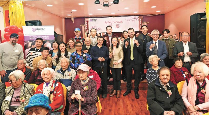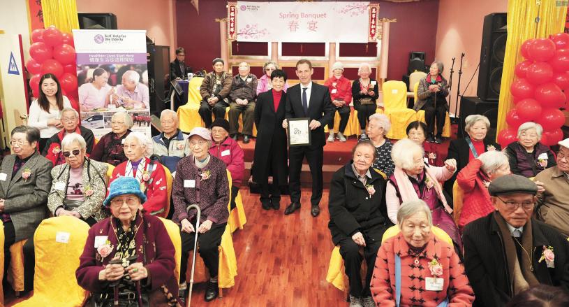三藩市市長羅偉、第三區市參事李爾德等嘉賓,紛為長者們頒發榮譽證書及象徵健康長壽的「金桃頸鍊」。