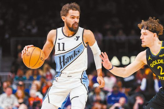 對陣勇士的比賽中,特雷楊持球突破防守。路透社