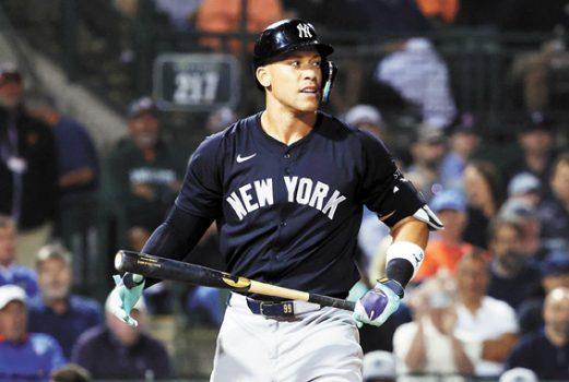 去年勇奪美聯全票MVP的揚基重砲「法官」賈吉(Aaron Judge),22日對戰費城人夯出2分砲,今年春訓首轟出爐。