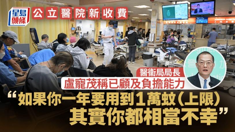 至於公立醫院將增設「封頂」機制,「全年收費上限」為1萬元,料有7萬名重症病人可受惠。盧寵茂指,這機制主要是保障一些不幸患重病的病人, 「如果一年用到1萬元, 其實都相當不幸,病一定是很嚴重,比如中風,要長期住院或者是長期病患的人,經常要入院或者去接受治療」。他舉例有些中等收入人士患大病,突然失去工作能力,又有很多額外支出,因應這些人士收入中位數約半個月工資,訂出1萬元這個數額。