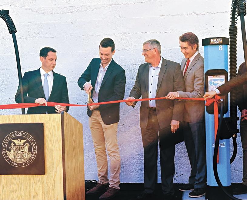 總部位於紐約布魯克林的電動汽車充電基礎設施初創公司 Revel 周一在三藩市米慎區Erie街119號為首個快速充電站剪綵,為明年向整個灣區擴張的計劃拉開序幕。市長羅偉、環境局局長陳秉賢(Tyrone Jue)等人出席活動。
