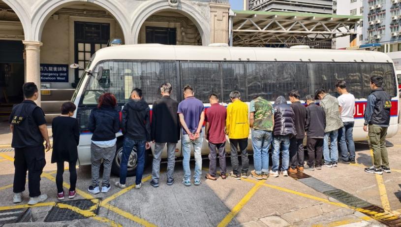 旺角警區特別職務隊人員根據線報及經深入調查,昨日(25日)在區內展開打擊毒品行動,突擊搜查通菜街一單位。行動中,人員在該單位內拘捕一名53歲本地男子涉嫌「經營毒窟」、「販運危險藥物」及「處理及管有應課稅貨品」;另外10名本地男子、2名本地女子及1名非華裔男子,年齡介乎37至68歲,涉嫌「服食或注射危險藥物」被捕;一名55歲本地女子則涉嫌「准許或容受處所用作為煙窟或作非法販運危險藥物之用」被捕。所有被捕人現正被扣留調查。