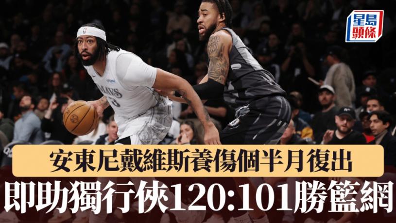 「一眉」安東尼戴維斯(Anthony Davis)季中被湖人送到獨行俠交換當積後,只上陣了一場便要養傷超過一個半月,周一他終於傷癒復出,領軍獨行俠以120:101作客擊敗籃網錄二連捷。