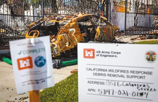 美國陸軍工程兵團標誌表明民宅危險物質清除工作已完成。洛杉磯時報