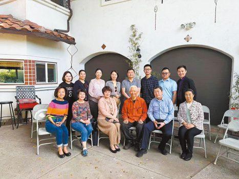 參與「橡樹下工坊」的亞凱迪亞社區成員與主辦人黃鐵嶼博士(前排中)在生態屋前合影。 本報記者拍攝