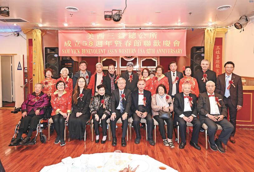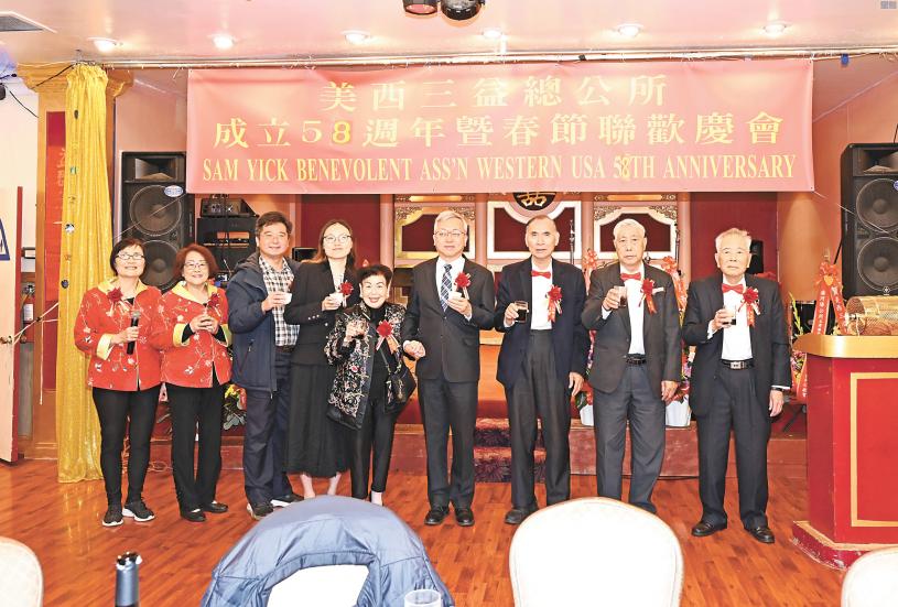 3月31日中午,美西三益總公所假座華埠皇宮酒樓舉行2025春節聯歡慶會。台北駐舊金山經文處副處長朱永昌、金山文教中心主任劉岱欣;花縣總會館主席江煦輝;第一副主席江冠洲、第二副主席劉慶潮;國民黨駐美總支部、美洲秉公總堂、美國至德三德總公所、旅美開平同鄉總會、潘河陽公所、開平一中校友會、裡謳慈善同鄉會首長暨僑界嘉賓友好蒞臨盛會。