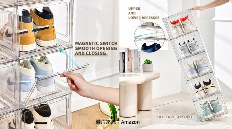這款大型磁吸鞋盒組(4件裝)具備透明門片與磁力開關設計,開關順手,還能有效防塵,輕鬆拿取鞋子、衣物或日常小物。無需工具即可快速組裝,折疊收納也超省空間,適合衣櫥、層架或床底使用。單盒尺寸13.7″x10.6″x7.3″,可收納靴子、毛衣或毛毯,穩固堆疊讓空間垂直化,整齊又省位。附贈10個透氣防塵袋,適合保存易損鞋款或旅行用品。美國製造,是兼具實用與美觀的全方位收納好物。