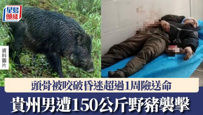 貴州男遭150公斤野豬襲擊,頭骨被咬破昏迷1周險送命。