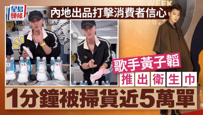 內地衛生巾接連爆出醜聞,嚴重打擊消費者信心,早前已有網民要求小米雷軍推出衛生巾。不過,小米還沒有消息時,內地歌手黃子韜近日已在直播間開售他合夥收購的衛生巾工廠做的產品,以1分錢的價格賣出49500份給顧客試用。在直播間中,黃子韜和工作人員稱,其產品屬於「醫護級」,並通過了多項檢測。