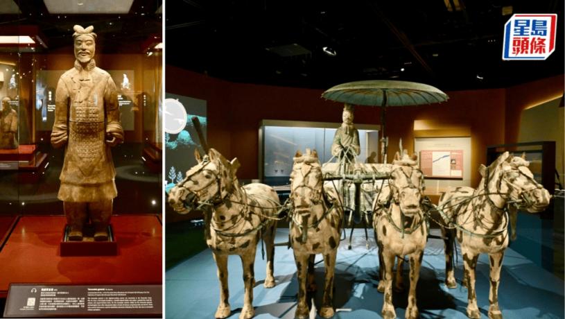 香港歷史博物館總館長何惠儀表示,今次康文署與陝西省文物局合作,展出逾100套精選藏品,分別來自秦始皇帝陵博物院、漢景帝陽陵博物院和陜西省考古研究院,超過一半首次在香港展出,包括舉世聞名的秦始皇兵馬俑、兩代都城的建築磚瓦、漢景帝地下軍團和牲畜群像,呈現統一王朝風貌。展品當中11件/組為國家一級文物,而一級文物中更有4件是首次在内地以外地方展出。