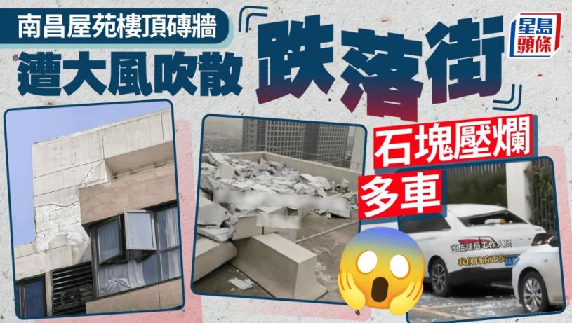 內地日前多地遭遇極端大風吹襲,江西南昌有屋苑的頂樓圍牆,竟然應風崩塌,碩大磚塊被「吹散」跌落街,將多輛泊在樓下汽車壓毀幸無傷人。屋民質疑涉及偷工減料豆腐渣工作,發展商辯稱是設計缺陷。當地住建局指已介入,正待專家鑑定。
