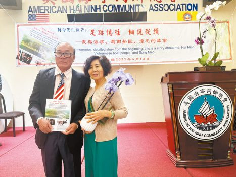 何奇新書《足跡憶往 細說從頭》發表會,13日在美國海寧同鄉會隆重舉行。該書為其個人回憶錄,詳實記錄了自上世紀八〇年代起,長達數十年的奔走歷程與公益實踐。書中回顧了他曾在荷蘭為越南華人發聲、在美國為滯港難民奔走請命的經歷,也詳述他如何與海寧同鄉代表籌款購置會館,在越南潼毛原鄉建校、修橋、重建觀音廟等義行善舉。如今經由其親筆記錄,成為華人移民史中的一段珍貴篇章。
