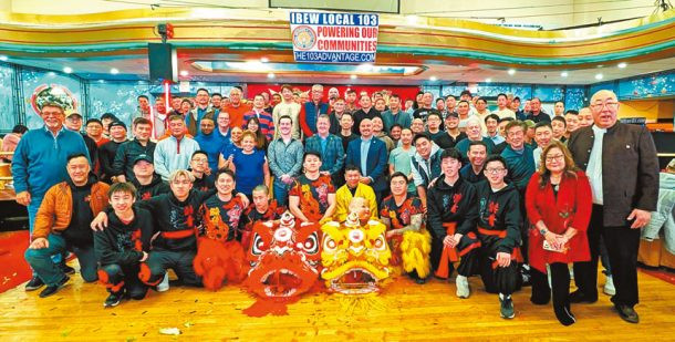 波士頓亞裔電工會第二十屆春宴12日在唐人街知名的帝苑大酒樓隆重舉行。麻州眾議員黃子安、波士頓市議員費連、墨菲等政要,以及紐英崙中華公所主席雷國輝等各僑團代表和國際電工工會103分會(IBEW Local 103)亞裔會員共200多人出席。會場氣氛熱烈,大家一邊分享美食,一邊欣賞精彩的卡拉OK演唱,一同度過愉快的夜晚。
