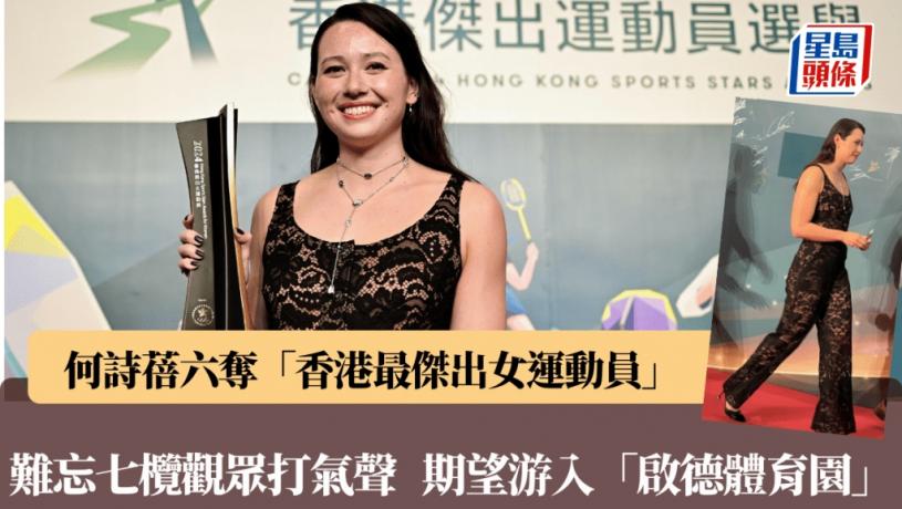 第六次奪「傑運」中的「香港傑出女運動員」(2017、2019、2021-2024)的「泳后」何詩蓓(Siobhan),周四晚穿著一襲透明黑色喱士連身褲令人眼前一亮,型格得來帶點性感,周五將飛到歐洲集訓的她上月底曾到過啟德主場館觀看七人欖球,她坦言希望「有一天能在啟德比賽」。