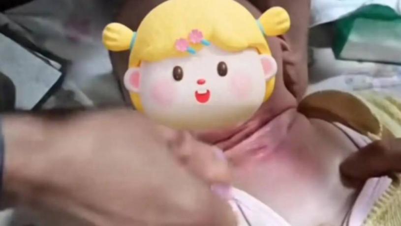 影片中,一嬰兒被兩個成年人分別用手固定住頭部和身體,另一人用刮痧板在嬰兒的前頸部刮痧,中途嬰兒疑因被刮疼發出哭喊聲。影片中兩人對話稱「剛剛哭得哇哇叫」「現在他刮習慣了,沒有感覺」。