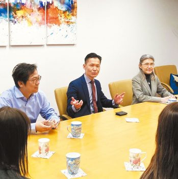 接下來,黃薳玉組長與蔡孟勳組長分別就駐波士頓台北經文處的教育、科技與學術交流工作進行簡要介紹。黃組長與蔡組長皆鼓勵訪團日後可就交流合作、資訊分享等方面與駐處保持聯繫,深化彼此互動。