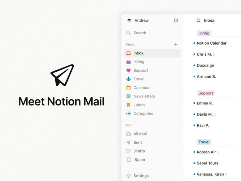 電郵管理平台Notion Mail是一款由人工智能(AI)驅動的Gmail電子郵件用戶端,與Notion的其他工作流程管理平台無縫整合。