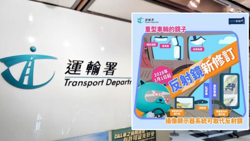 運輸署表示,最近完成修訂《道路交通(車輛構造及保養)規例》,訂明反射鏡的新規格,例如反射鏡面積和視野範圍,令司機有更好的視野,減少車輛盲點。由2028年1月1日起,新車須裝配符合新規格的反射鏡,亦可以用攝像顯示器系統代替傳統反射鏡。