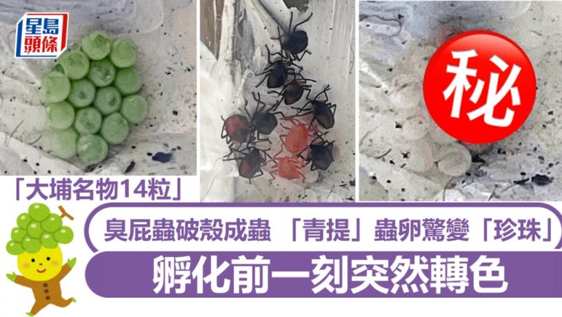 「臭屁蟲」(又稱「臭屁辣」)卵在大埔有「大埔名物14粒」之稱,近日正是「臭屁蟲」的產卵孵化高峰期。不時有網民發現蟲蹤時,都會上載狀如迷你青提的「臭屁蟲」卵相片警世。