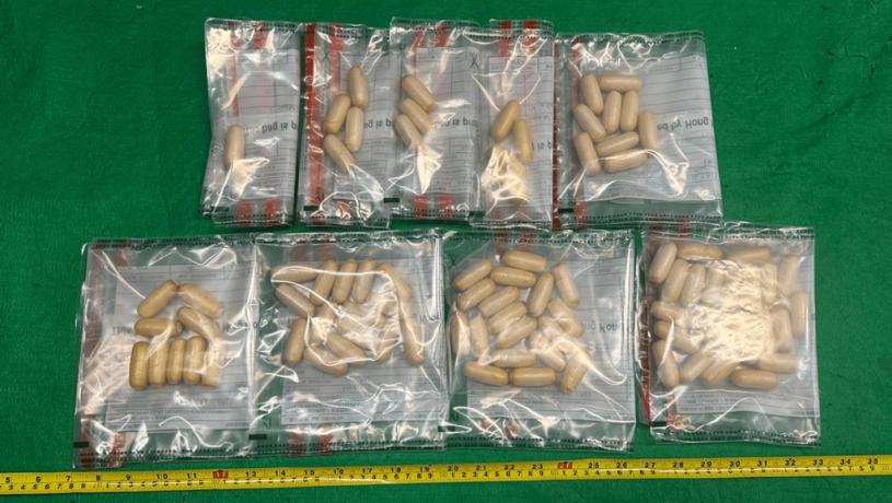 一名45歲男旅客於4月18日從牙買加蒙特哥貝經德國法蘭克福和卡塔爾多哈飛抵本港。海關人員替他清關期間發現有可疑,懷疑他體內藏有毒品,遂把他帶到醫院檢查。