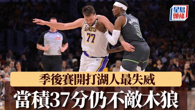 NBA季後賽於周六開打,焦點之一的西岸3號種子湖人雖然有球星當積(LUka Doncic)轟入37分,但被6號種子木狼的三分雨射死,主場以95:117大敗予木狼,落後場數0:1,成為首日4場賽事中唯一被以下剋上的球隊。