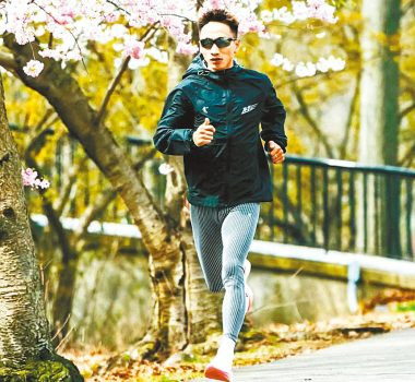 賈俄仁加在櫻花綻放的查爾斯河邊熱身。