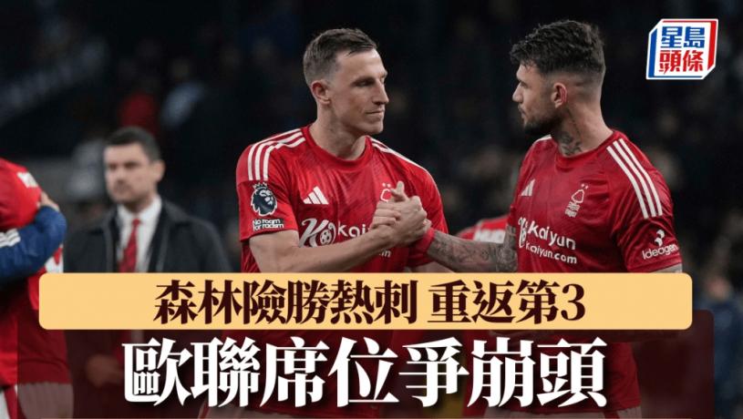 周一英超獨腳戲,諾定咸森林靠早段兩個入球,作客以2:1險勝熱刺,取得爭奪下季歐聯席位的寶貴3分,由賽前第6位一口氣重上第3位。這亦令來季歐聯入場券之爭變得越來越澈,截至周二第3的森林至第7的阿士東維拉只爭3分。而森林將帥都矢言勢要助球隊隔超40年後重返歐聯。