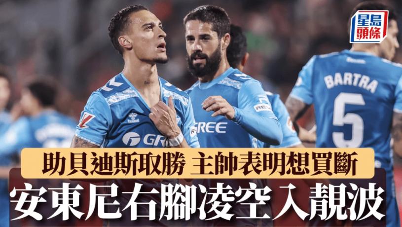 曼聯棄將安東尼馬菲奧斯又入波!周一西甲,此子以右腳凌空射入靚波,助貝迪斯作客3:1擊敗基羅納,賽後只落後第5位的維拉利爾1分,續向下季歐聯席位進發。安東尼自外借至貝迪斯後已入5球成球隊核心,故主帥柏歷堅尼也直言希望未來可繼續合作。