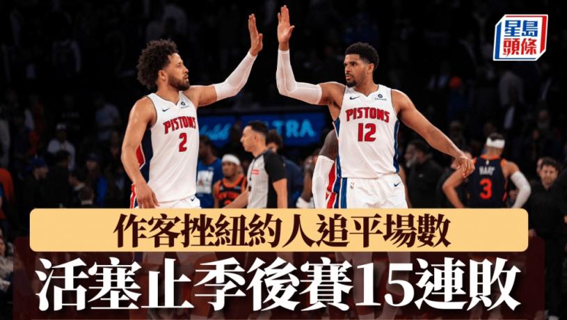 周三NBA季後賽東岸首輪次回合,活塞在根寧咸攻入33分下,作客以100:94擊敗紐約人,將場數追平至1:1,並終止季後賽15連敗,事隔17年再奪季後賽勝利,賽後將帥都表示這是重大的勝利。