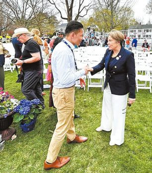 希利指出,這些勝利是由那些在康和北橋和萊克星頓戰鬥綠地上冒著生命危險的男女贏得的。在我們的歷史上,它們受到勇敢軍人的保護,並得到勇敢男男女女的推動。「現在我們要保衛它們。我們必須接受約翰·亞當斯的警告,他曾說過:自由一旦失去就永遠失去了。我們必須汲取科雷塔·斯科特·金的勇氣,她曾說過:自由從來不是真正贏得的。你需要一代代地去爭取它,去贏得它。」希利州長最後說。本報記者李強波士頓報道