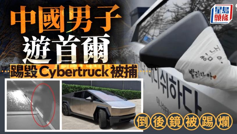 一名男子在南韓首爾被涉踢毀路旁一輛特斯拉(Tesla)農夫車「Cybertruck」﹐前日(22日),當地警方證實涉案男子為一名30多歲的中國遊客。