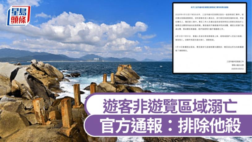 海南三亞市崖州區某景區4月12日下午5時25分許發生遊客溺亡事件。海南省三亞市崖州區旅遊工作領導小組辦公室周五(25日)發布有關通報。