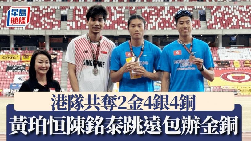 繼首天8面獎牌後,香港田徑隊於周五最後一天比賽憑2位男子跳遠代表黃珀恒及陳銘泰,分獲1金1銅,港隊以10面獎牌(2金4銀4銅)完成新加坡之旅,各將下一站,是5月10-11日在灣仔運動場舉行的香港田徑錦標賽,黃珀恒期望挑戰自己個人最佳成績(PB)的7米71。