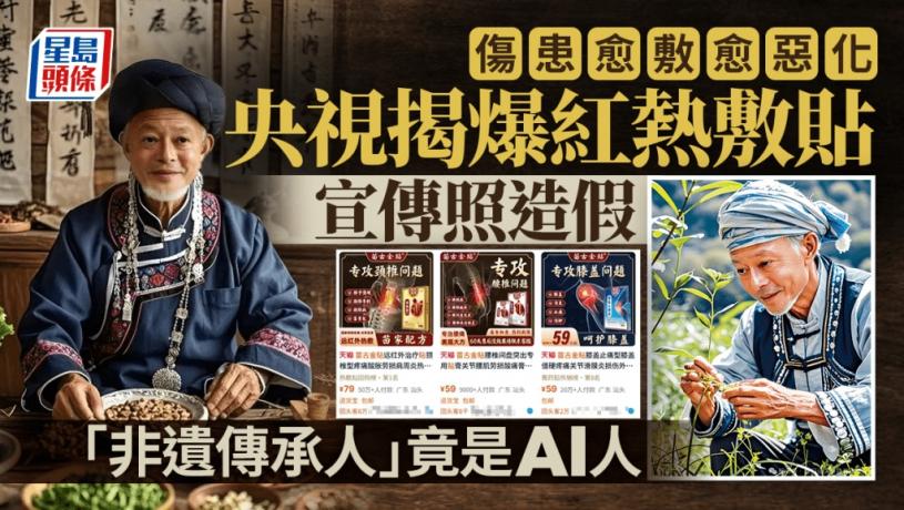 央視新聞前日爆料稱,某電商平台爆款產品、養生熱敷貼「苗古金貼」宣傳廣告中的所謂「非遺傳承人」唐付政照片,99%為人工智能生成的假照片。有電商中介爆料,要取得「非遺傳承人」的假證書,僅須花2500元(人民幣,下同)即可購得。