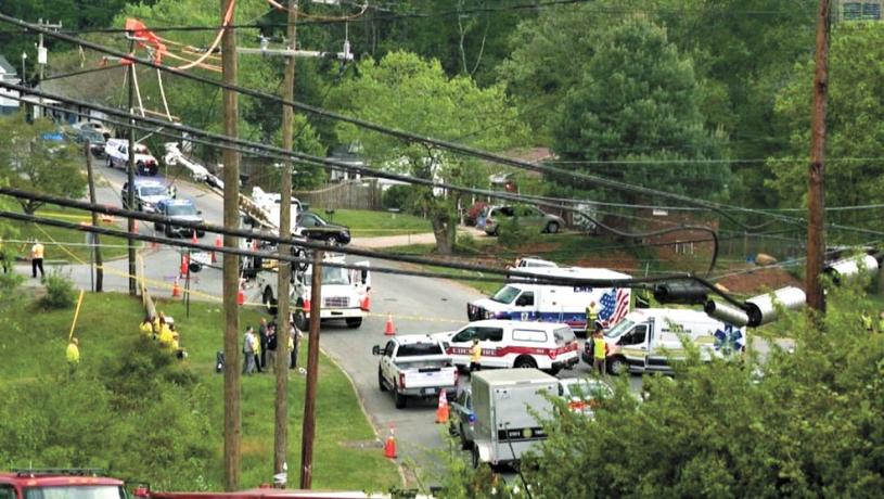 ABC報道,事發在北卡伊甸市(Eden),肇事卡車24日下午駛經某個路口時,司機涉嫌沒有遵照交通標誌停車,首先撞到多名電力施工人員,再撞向旁邊的高空作業車,最後卡車也掉落泥坑。北卡公路巡警表示,4名工人當場死亡,3名傷者中兩人需由直升機緊急送院,1人生命危殆另1人情況穩定,高空作業車的司機亦告受傷,幸而沒有性命危險。