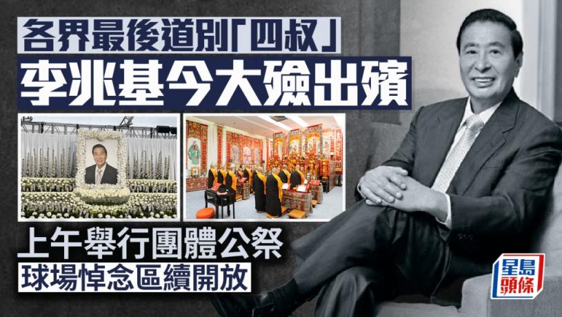 恒基兆業地產集團創辦人李兆基於今年3月17日在家人陪伴下安詳離世,家屬於昨日(27日)起在北角香港殯儀館設靈,並於今日(28日)舉行團體公祭,及大殮出殯儀式,喪禮以佛教儀式進行。多名政商界人士出席,向李兆基最後道別。喪禮約在周一中午時間結束。