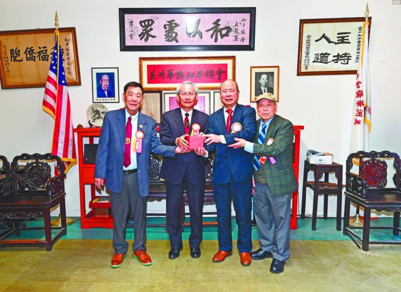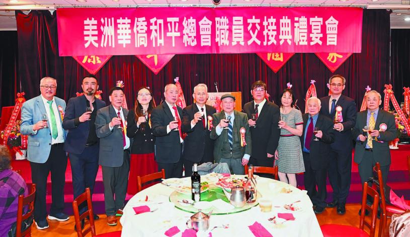 連任會長余武良致歡迎詞,他表示今晚大家齊聚一堂,不僅是為了共敘鄉誼,更是為了見證僑社的團結和諧。在此代表美洲華僑和平總會全體同仁,衷心感謝大家光臨,增添光彩。他談及美洲華僑和平總會成立於1913年,至今已有112年的歷史。當時華埠爭門較多,所以成立和平會館,協調及減少紛爭。早年有27個僑團參加,至今有19個僑團。但是我們的創會宗旨不變,希望大家秉持和平、和睦的理念,和諧僑社。「和平」,不只是一種理想,它是一種選擇、一種態度。未來,大家也要繼續以和平的方式處理分歧,以對話代替對立,以團結超越分裂。唯有如此,僑社才能長久地保持和諧、穩定與繁榮。大家攜手同行,把和平的精神,代代相傳。最後祝大家萬事如意,身體健康,僑社和諧。
