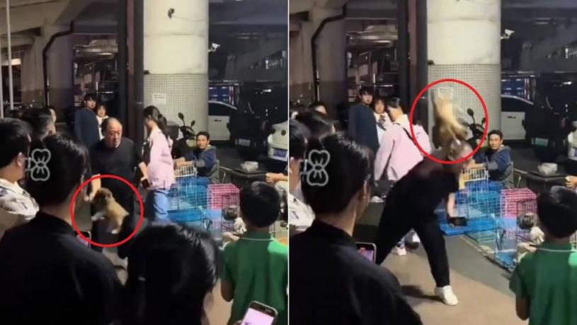 男子與攤販就小狗退款爆爭執,當眾把小狗掟死。抖音@森林說貓