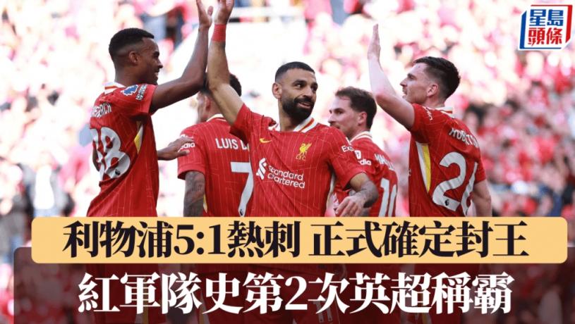 周日英超,利物浦憑鋒將路易斯迪亞斯、加普、穆罕默德沙拿和中場阿歷斯麥亞里士打各入一球,主場5:1反勝熱刺,正式確定封王,隊史第2次於英超稱霸。由於紅軍在2019至20球季首奪英超時,正值疫情而沒有球迷入場,今次終於在6萬名紅軍迷面前贏下冠軍。