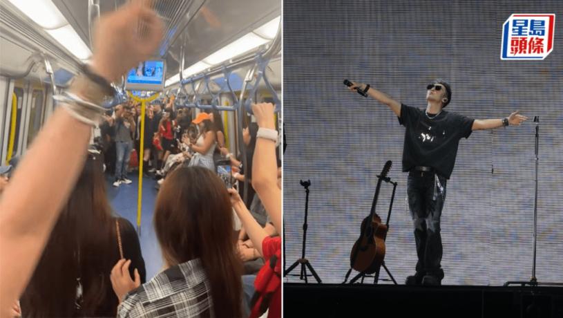 不少粉絲意猶未盡,從啟德主場館到港鐵啟德站或宋皇臺站,都需要約10分鐘路程,網上流傳影片可見,粉絲散場期間放聲高歌,合唱《無聲仿有聲》;另一片段則在地鐵車廂拍攝,粉絲大合唱《玉蝴蝶》,不少人舉機拍攝,流露享受表情。