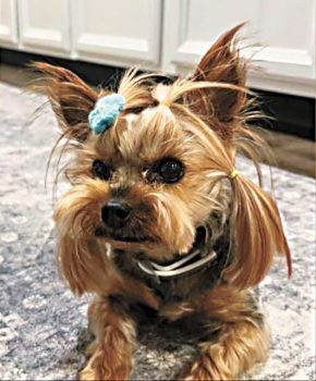 體重七磅、11歲的約克夏犬檸檬(Lemon)。Yue Zuo