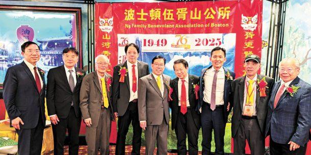 出席晚宴的嘉賓包括駐波士頓台北經文處廖朝宏處長、波士頓僑教中心高家富主任、全美伍胥山公所伍堅石總長、紐英崙伍胥山公所伍伯和元老和伍煥華元老、紐英崙中華公所雷國輝主席、波士頓黃氏宗親會黃光沐主席等。伍振中主席還特別邀請了昆西市長寇克(Thomas Koch)出席盛會。嘉賓們在致詞中對紐英崙伍胥山公所76周年表示熱烈的祝賀,對人才輩出的伍氏公所表示欽佩。他們希望公所在伍偉業和伍振中兩位主席的領導下會務昌隆。