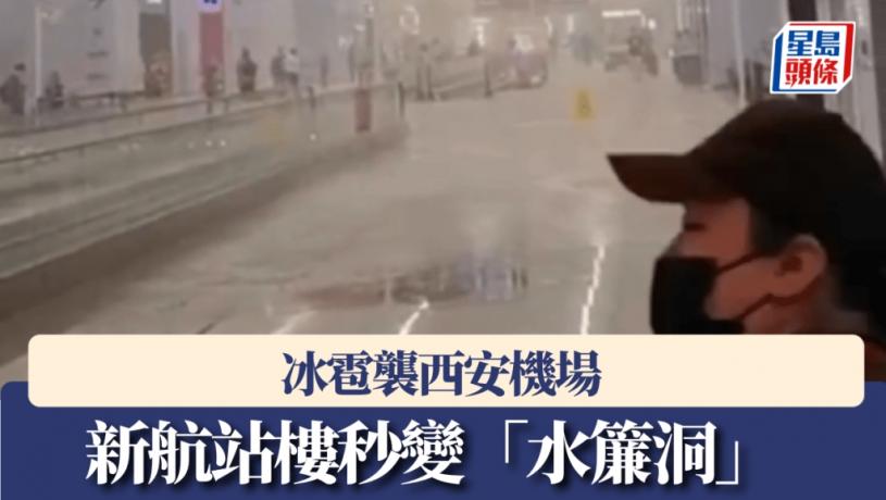 冰雹襲西安機場,新航站樓秘變「水簾洞」。