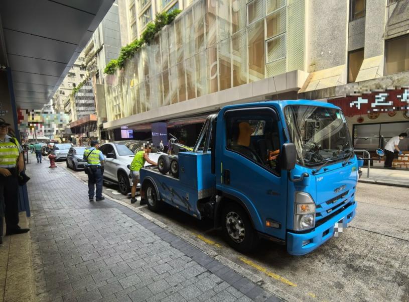 油尖警區聯同西九龍總區交通部人員昨日(9日)在區內進行代號「動天」(MOVESKY)的打擊區內違例泊車黑點行動。