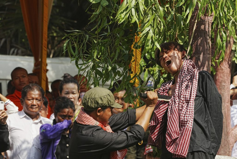 來自金邊藝術學校的三十多名學生演員重現了紅色高棉統治下的暴行。紅色高棉在 1975 年至 1979 年執政期間實施酷刑、處決、飢餓和暴政,造成柬埔寨四分之一的人口死亡。